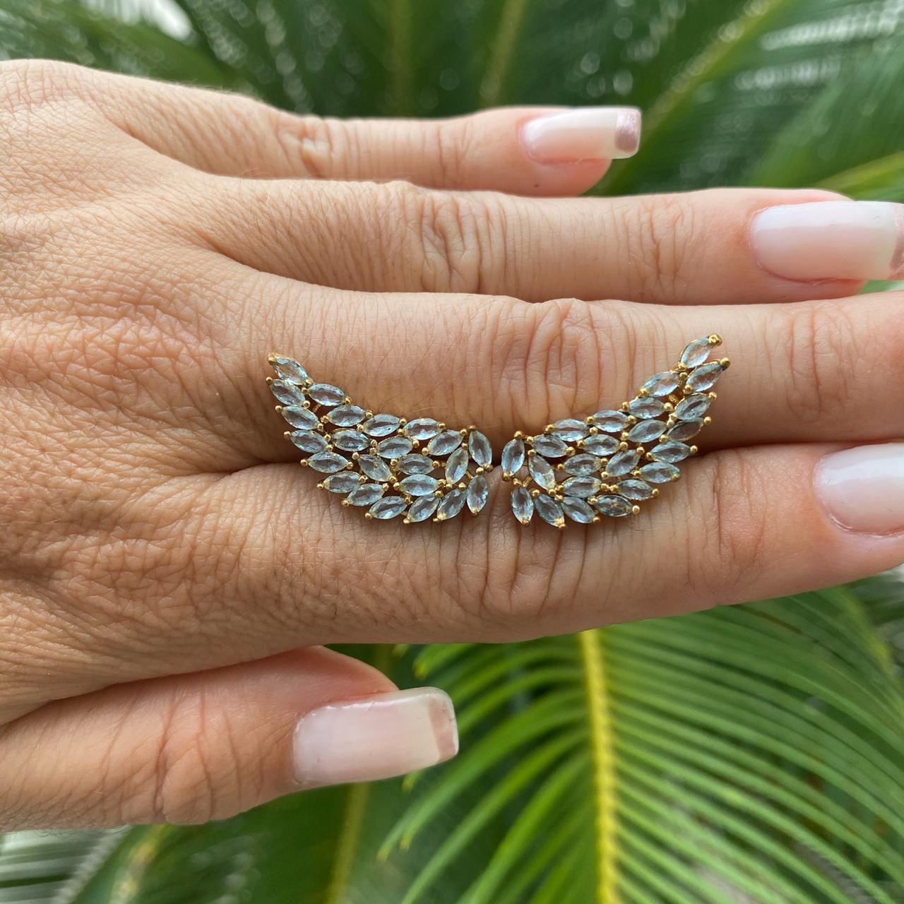 BRINCO FOLHEADO 18K EAR CUFF COM NAVETE AZUL BEM CLARO