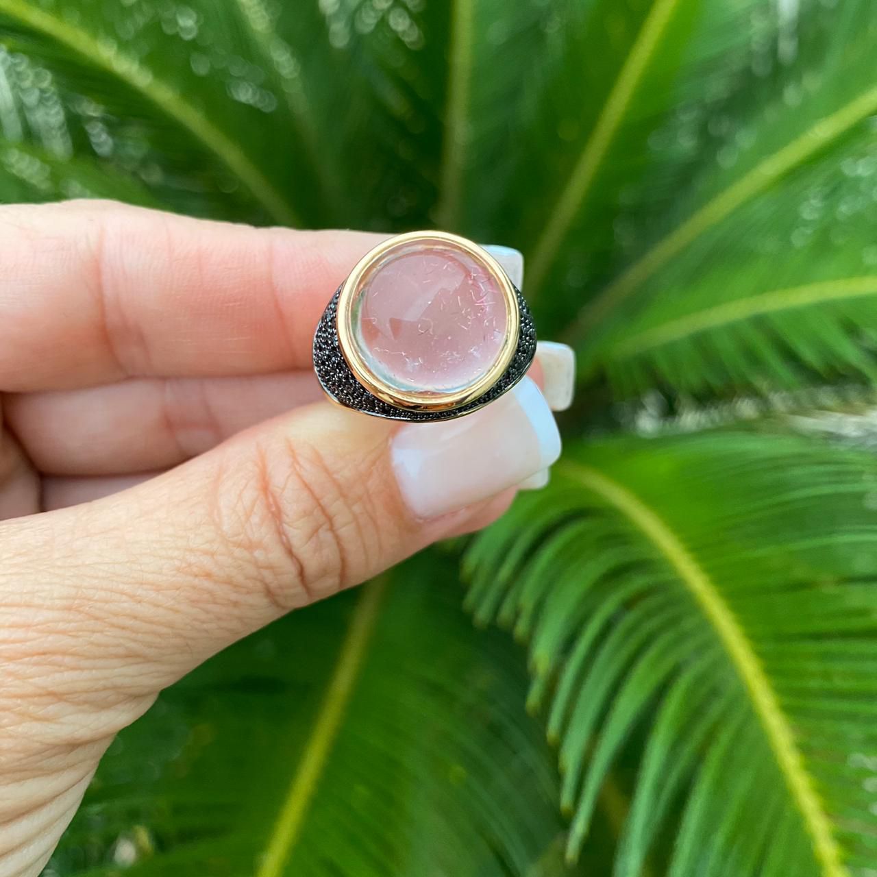 ANEL FOLHEADO OURO 18K BOLA DE CRISTAL E ZIRCÔNIAS NEGRAS MICRO CRAVEJADAS