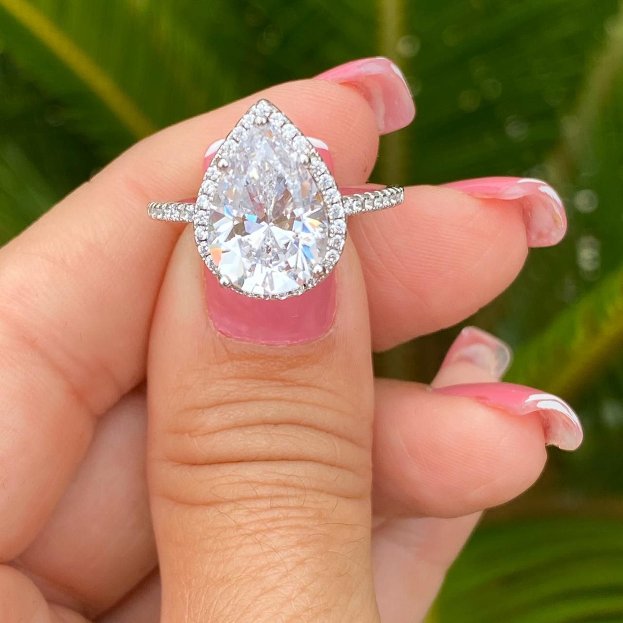 ANEL PRATA 925 GOTA GRANDE EM CRISTAL E ZIRCÔNIA MICRO CRAVEJADA