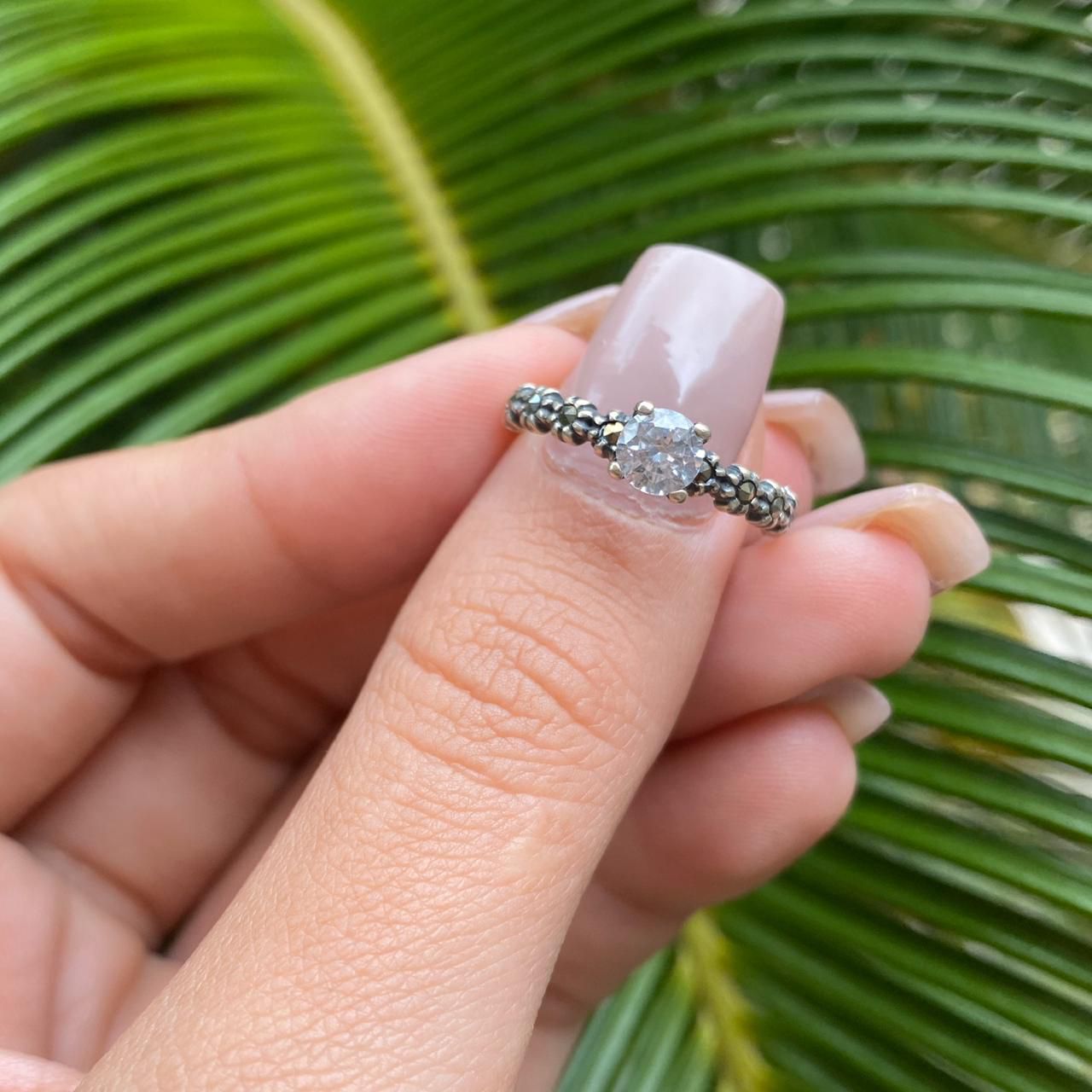 ANEL PRATA 925 SOLITARIO COM FLORZINHA