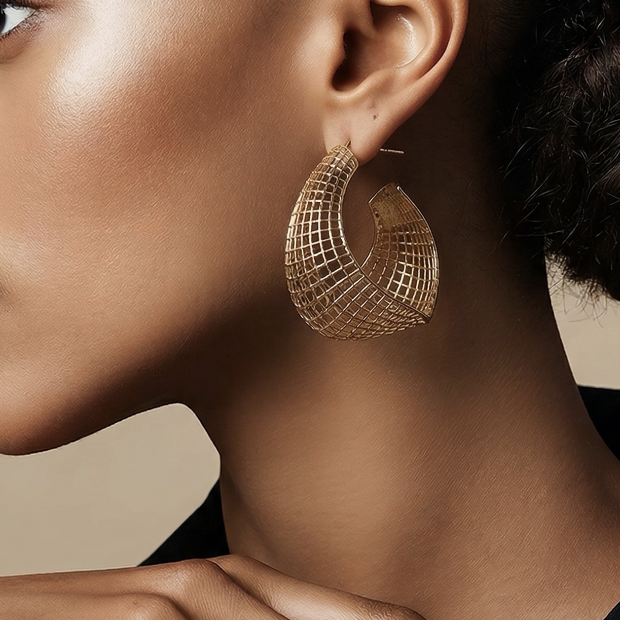 Brinco Banhado ouro 18 k grande todo trabalhado