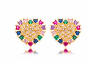 Brinco Banhado ouro 18k Coração Cravejado Color