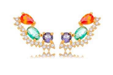 Brinco Banhado ouro 18k Ear Cuff Cravejado Color