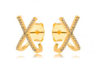 Brinco Banhado ouro 18k Ear Hook X Micro Zircônia
