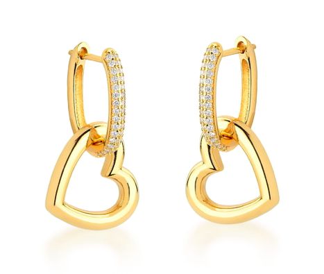 Brinco Banhado ouro 18k Zircônia Click Cravejado Com Coração Vazado Liso