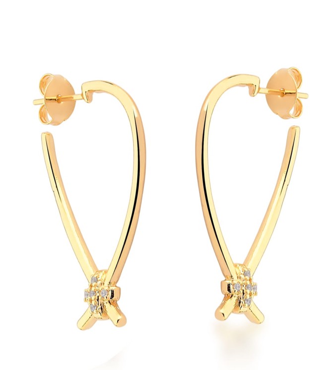 Brinco Banhado ouro 18k zircônia com Nó