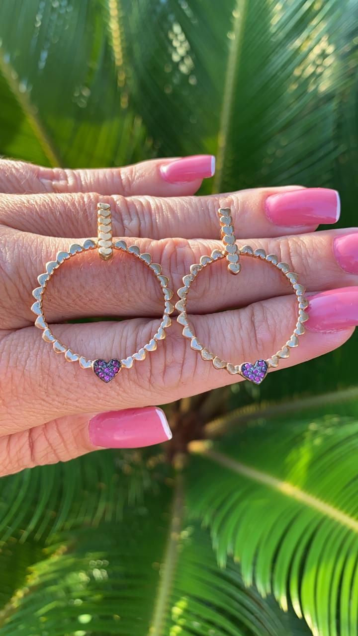 BRINCO DOURADO DE CORAÇÃO COM MICROZIRCONIAS COR RUBI