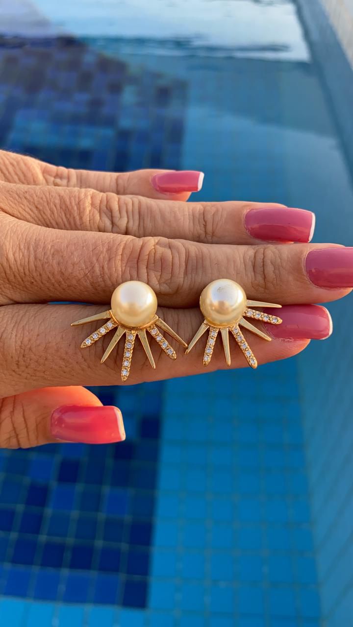 BRINCO DOURADO DE PÉROLA COM ZIRCONIA