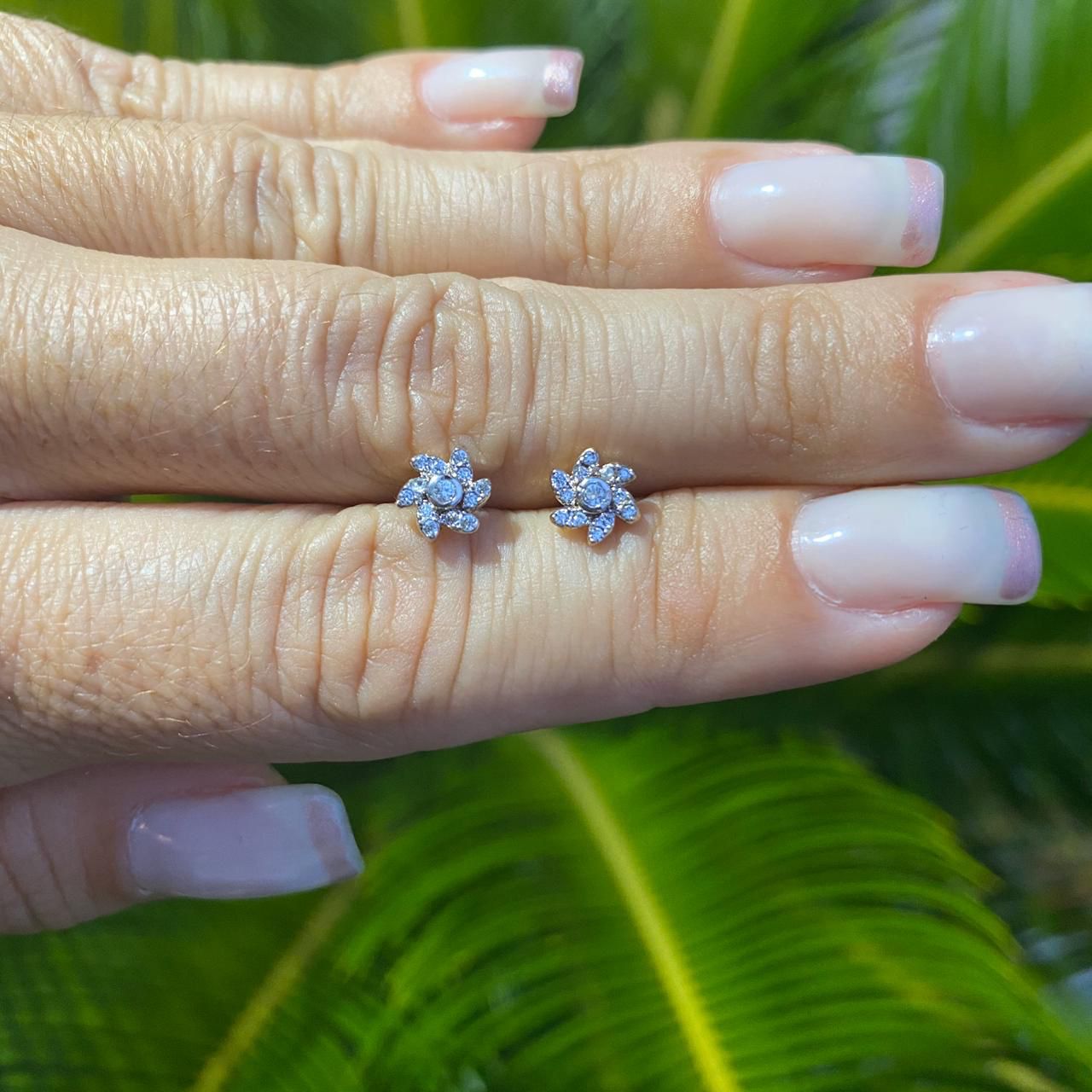 BRINCO FOLHEADO 18K FLOR EM ZIRCONIA