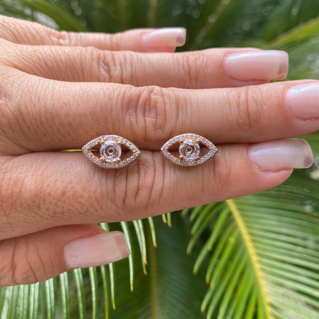 BRINCO FOLHEADO 18K OLHO GREGO COM ZIRCONIAS BRANCAS