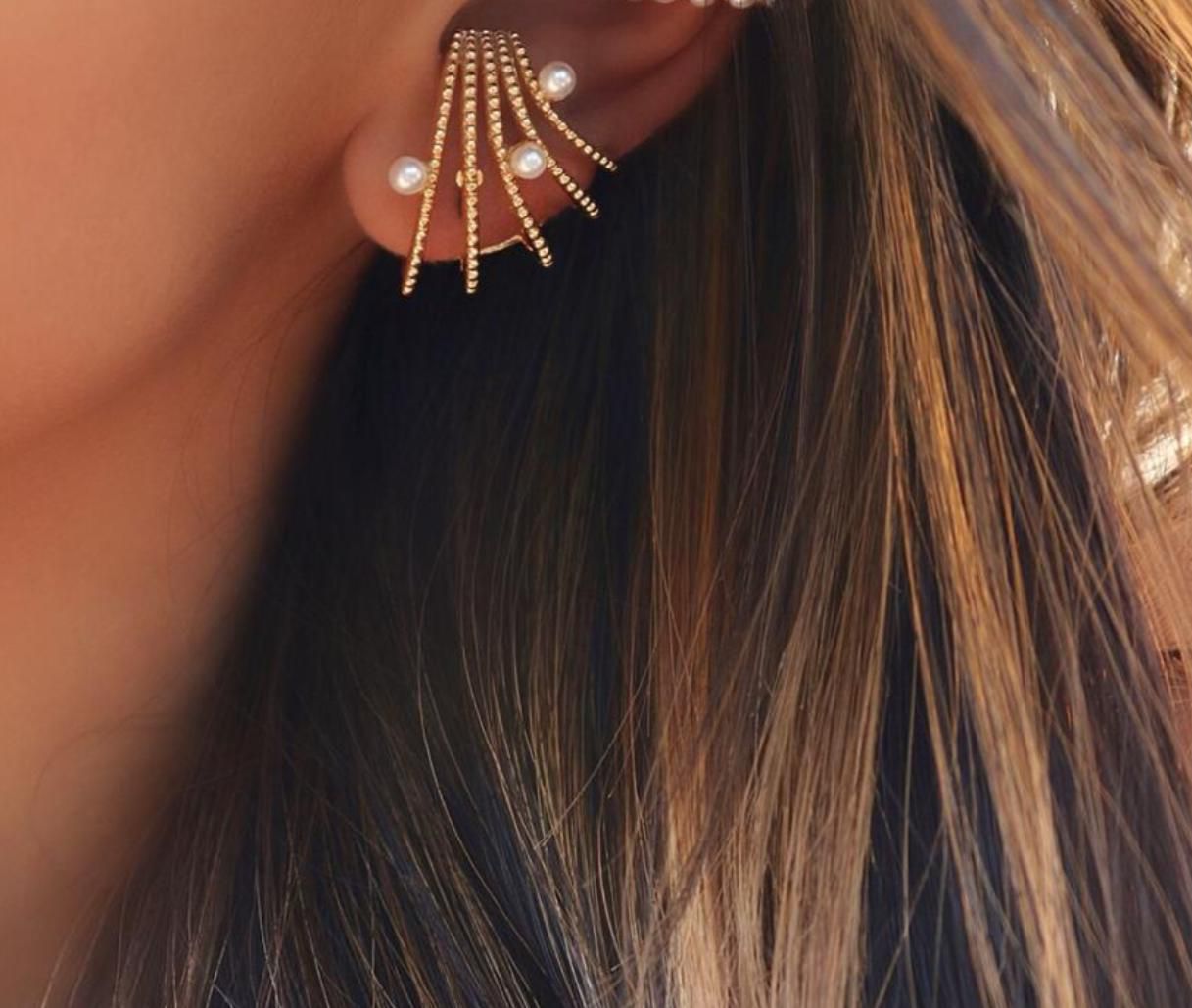 BRINCO EAR HOOK FOLHEADO OURO 18K PÉROLA