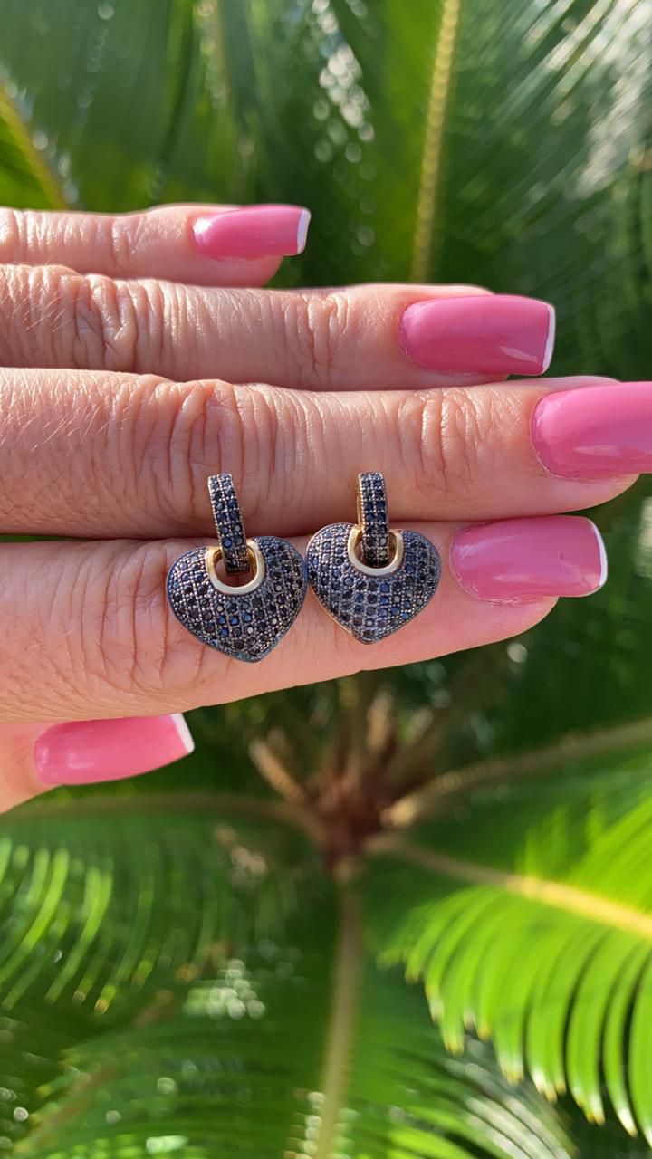 BRINCO FOLHEADO 18K CORAÇÃO COM ZIRCONIA NEGRA
