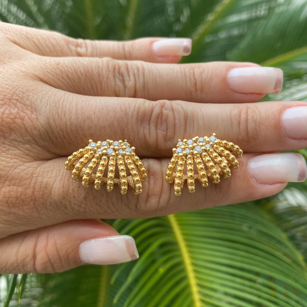 BRINCO FOLHEADO OURO 18K EAR CUFF COM ZIRCONIAS BRANCAS.