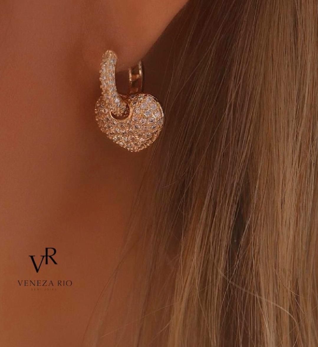 BRINCO FOLHEADO OURO 18K ARGOLA COM CORAÇÃO