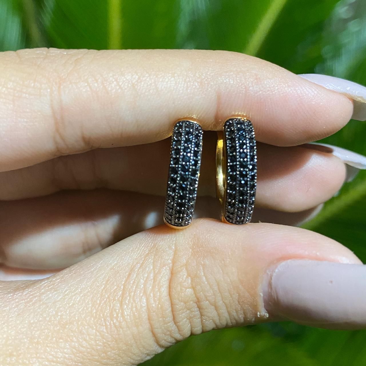 BRINCO FOLHEADO OURO 18K ARGOLA MICRO CRAVEJADA COM ZIRCÔNIA NEGRA