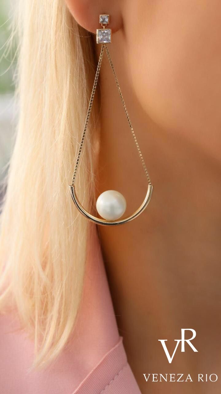 BRINCO FOLHEADO OURO 18K COMPRIDO COM PEROLA