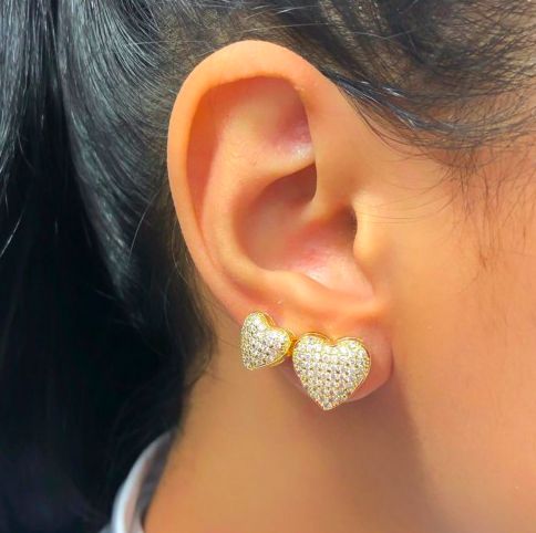 BRINCO FOLHEADO OURO 18K CORAÇÃO DUPLO
