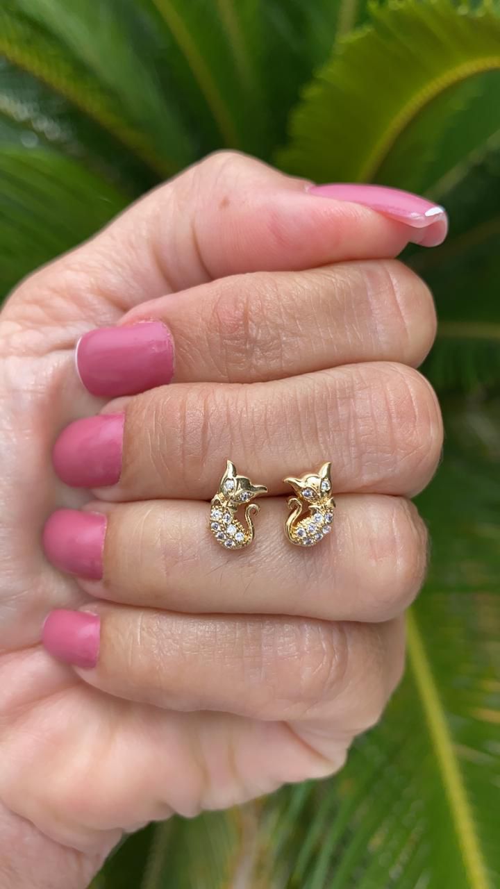 BRINCO FOLHEADO OURO 18K GATINHO PEQUENO