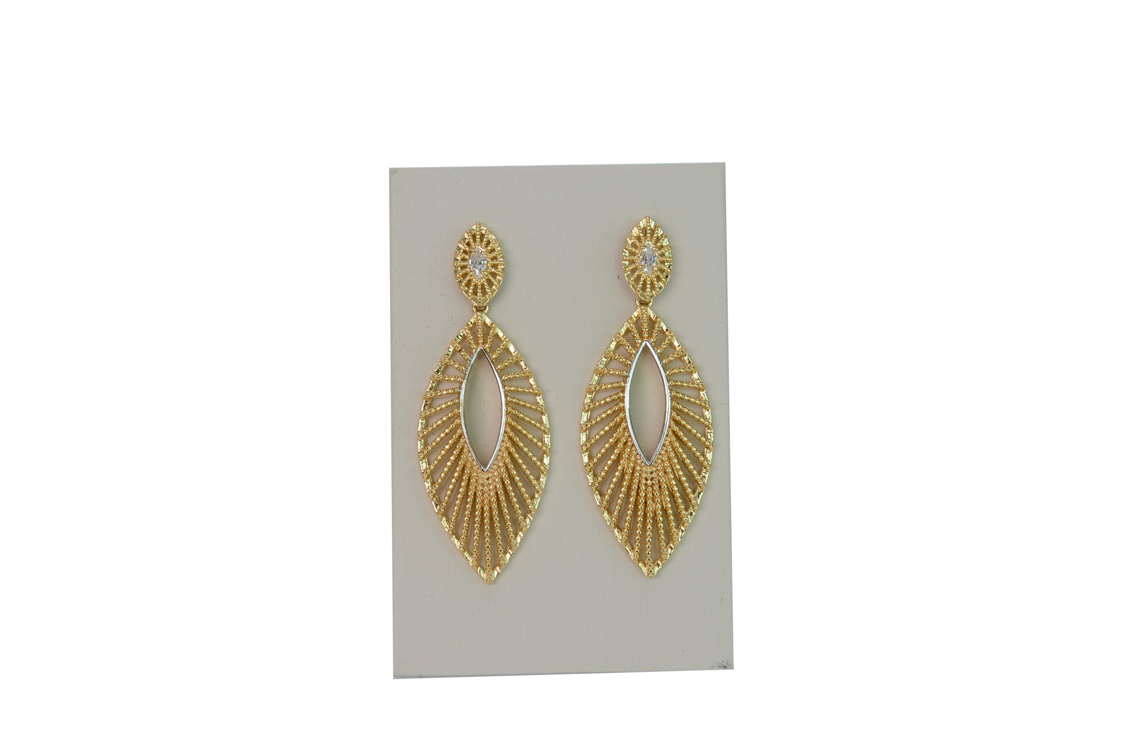 BRINCO FOLHEADO OURO 18K GRANDE TRABALHADO