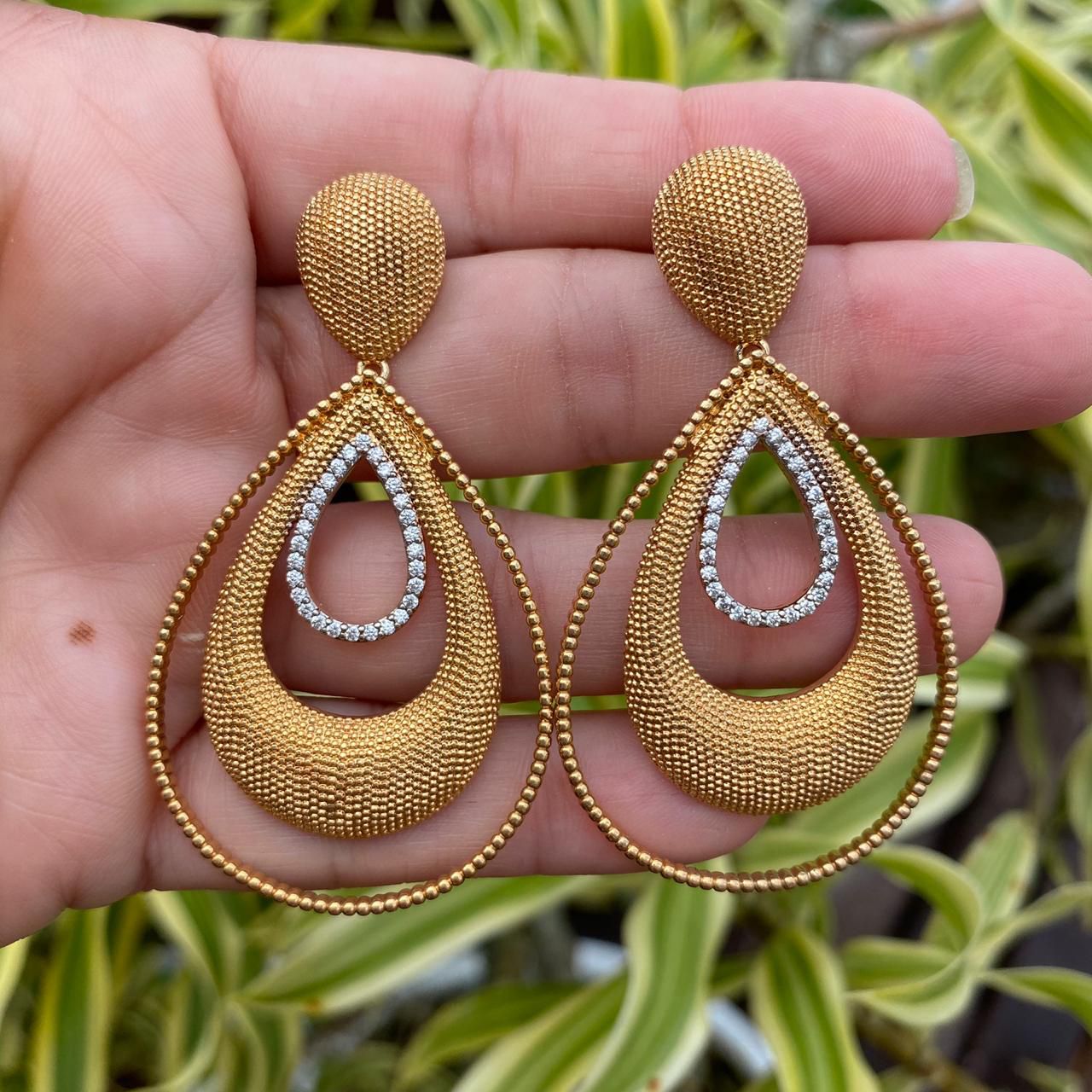 BRINCO FOLHEADO OURO 18K GRANDE TRÊS GOTAS