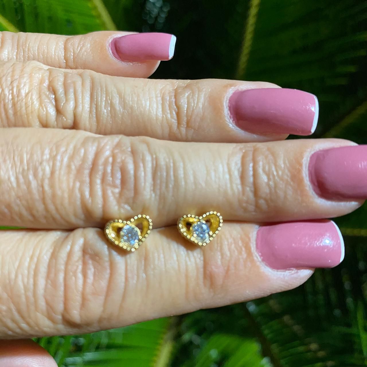 BRINCO FOLHEADO OURO 18K MINI CORAÇÃO CRAVEJADO COM ZIRCÔNIAS BRANCAS