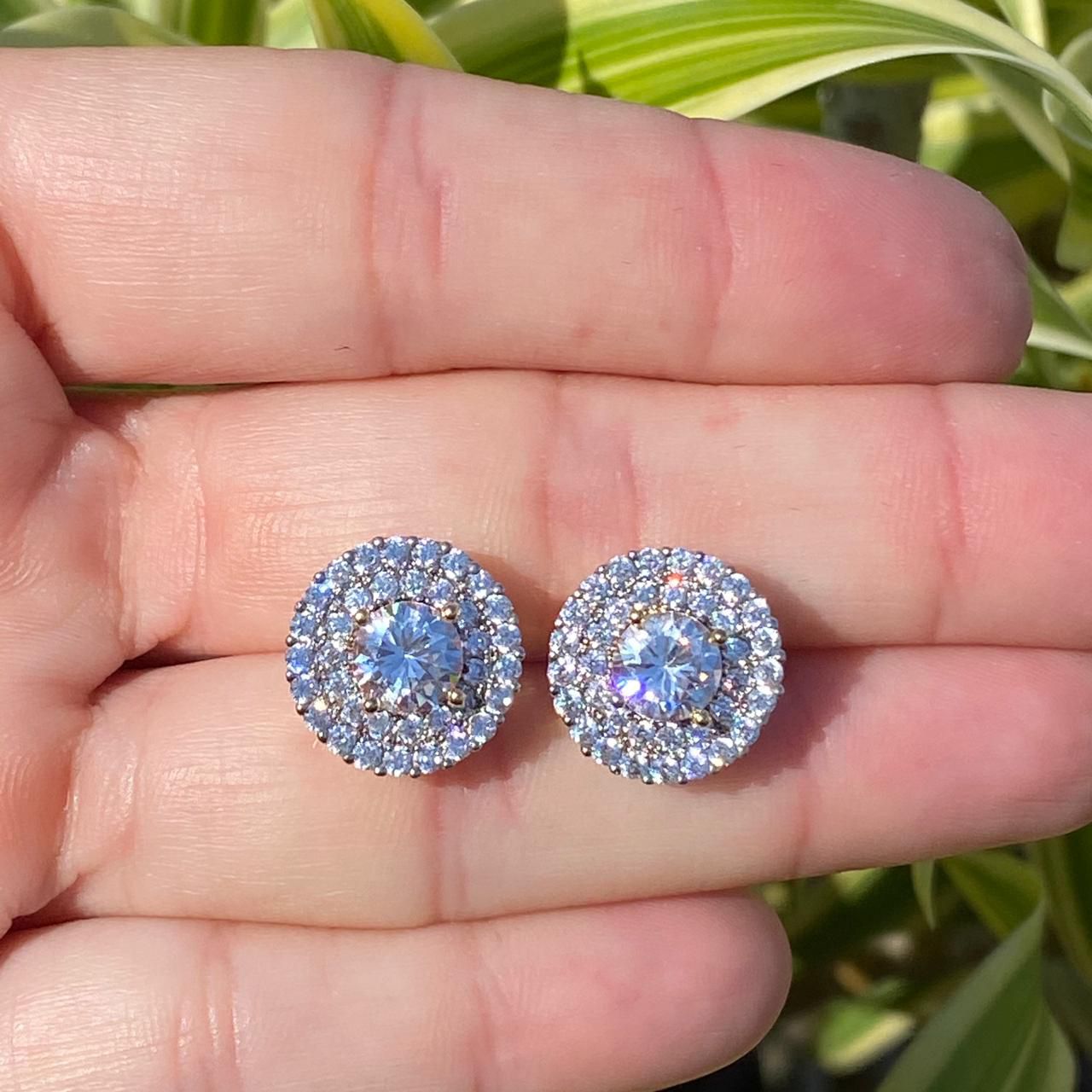 BRINCO FOLHEADO OURO 18K REDONDO TODO CRAVEJADO COM ZIRCÔNIA BRANCA E PEDRA DE CRISTAL