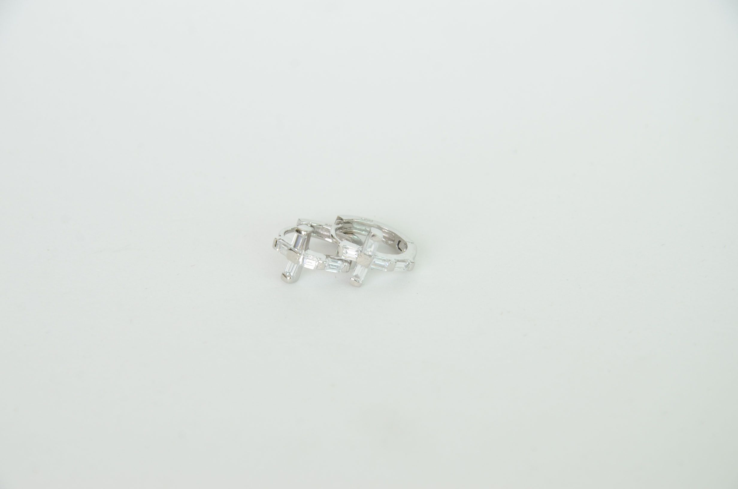 BRINCO FOLHEADO RODIO BRANCO ARGOLA DE CRUZ COM CRISTAL