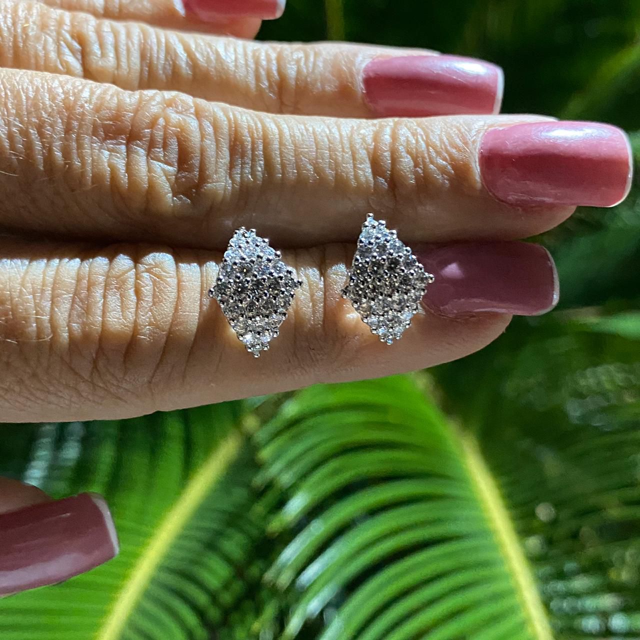 BRINCO FOLHEADO RODIO BRANCO BALÃO TODO CRAVEJADO COM ZIRCÔNIAS BRANCAS