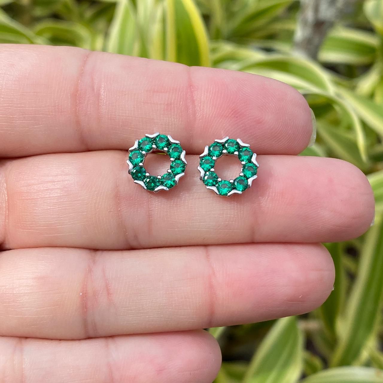 BRINCO FOLHEADO RODIO BRANCO REDONDO COM ZIRCÔNIA VERDE