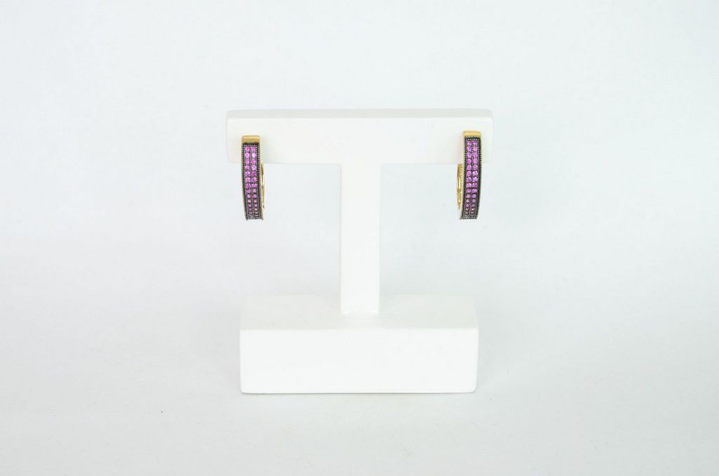 BRINCO FOLHEADO OURO 18K ARGOLA FINA CRAVEJADA COM ZIRCÔNIA ROSA