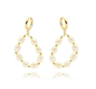 BRINCO FOLHEDO OURO 18K PÉROLA COM BOLINHAS