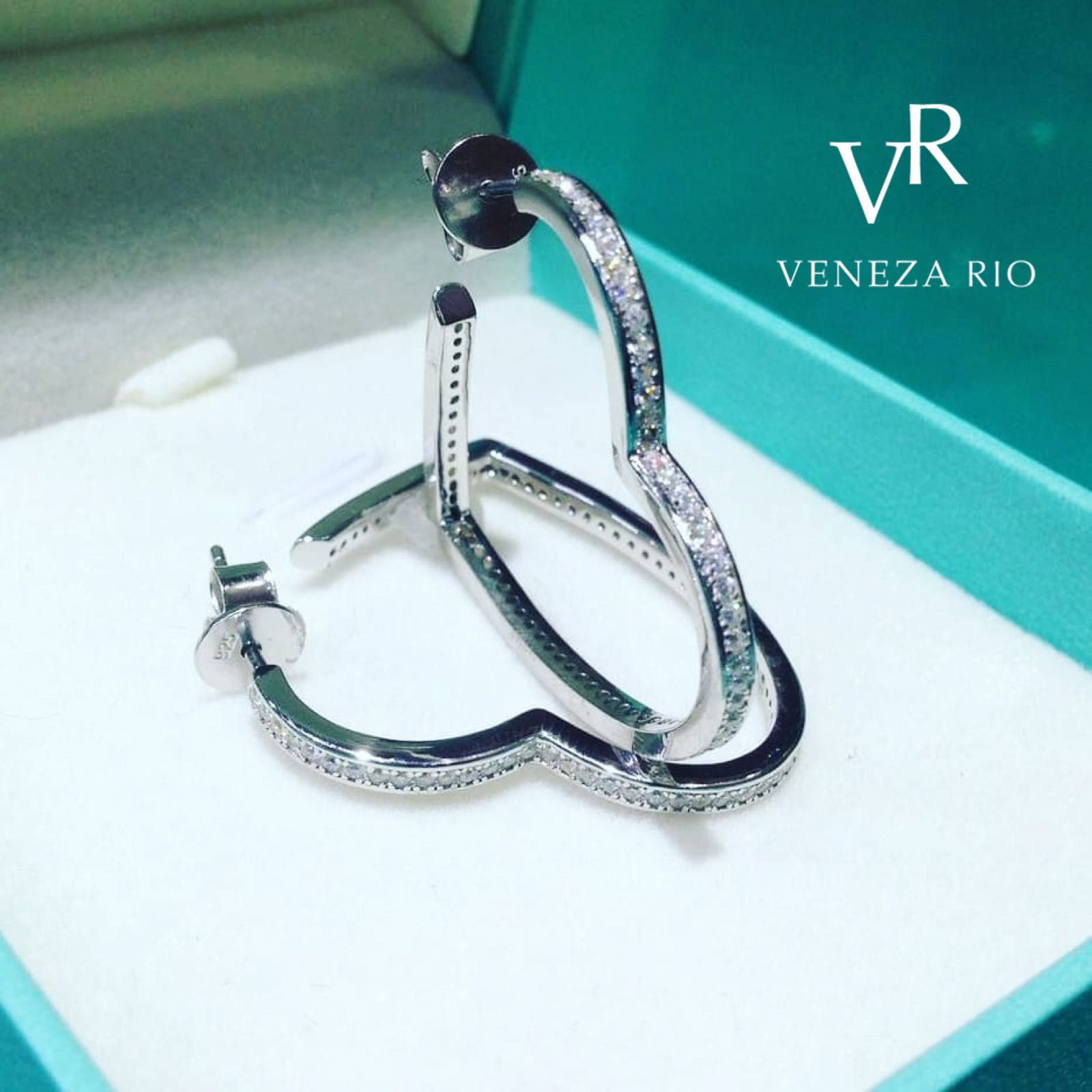 BRINCO PRATA 925 ARGOLA CORAÇÃO CRAVEJADa