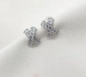 Brinco Prata 925 cravejado com banho de rodio Mini em X