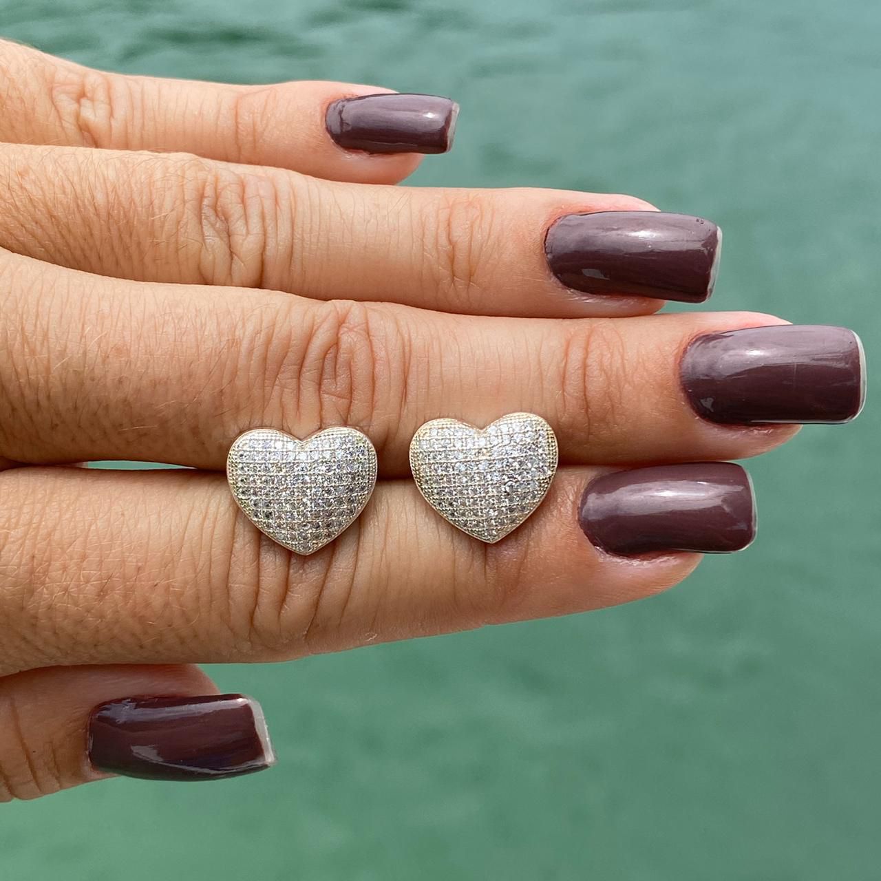 BRINCO PRATA 925 CORAÇÃO TODO CRAVEJADO COM MICRO ZIRCÔNIA BRANCA