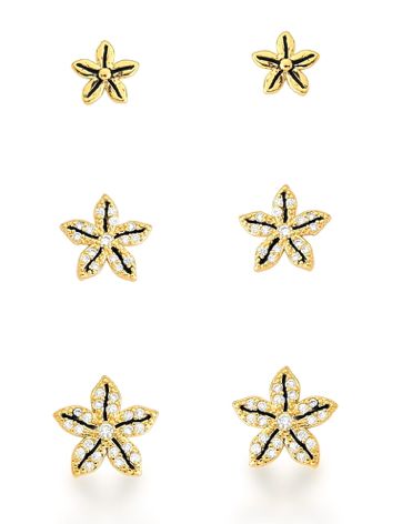 Brinco Trio Banhado Ouro 18K Flor