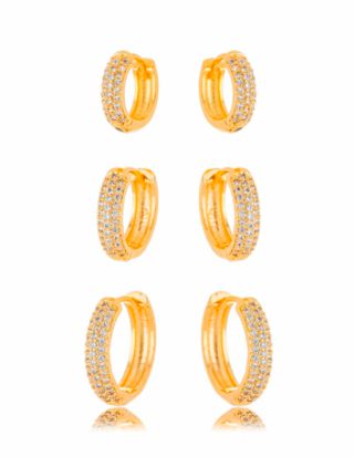 Brinco Trio Banhado ouro 18k Argola Micro Zircônia
