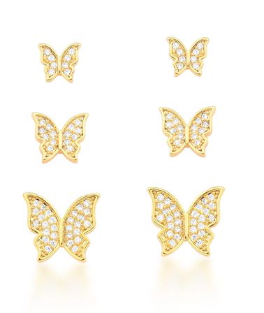 Brinco Trio Banhado ouro 18k Borboleta