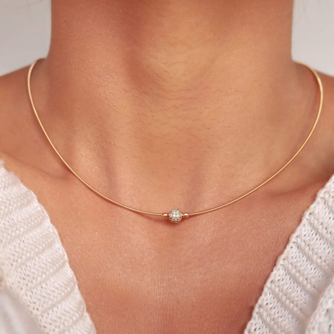 Colar Banhado ouro 18k Corda de Violão com Bolinha toda Cravejada