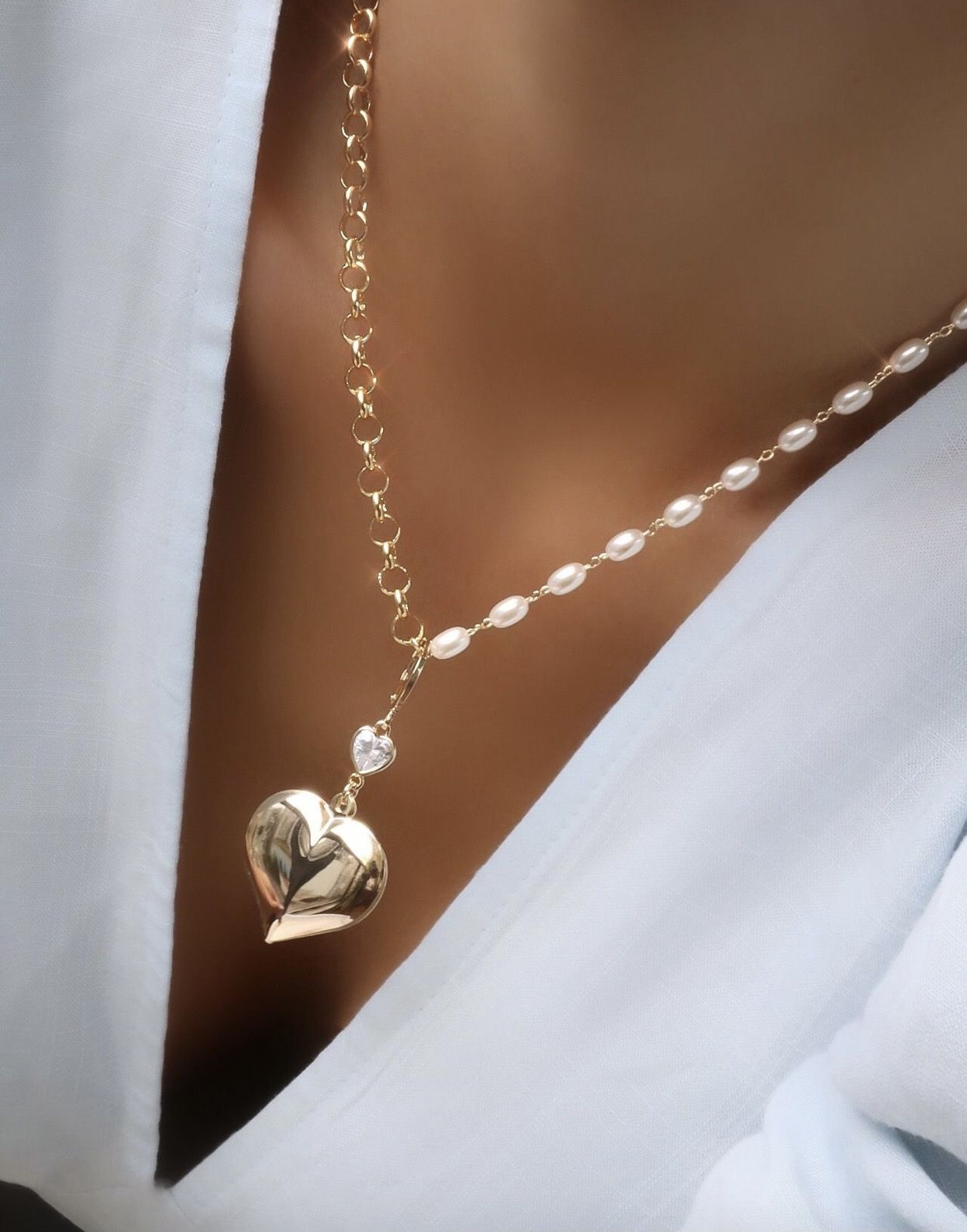 Colar Banhado Ouro 18K Pérola Com Pingente Coração