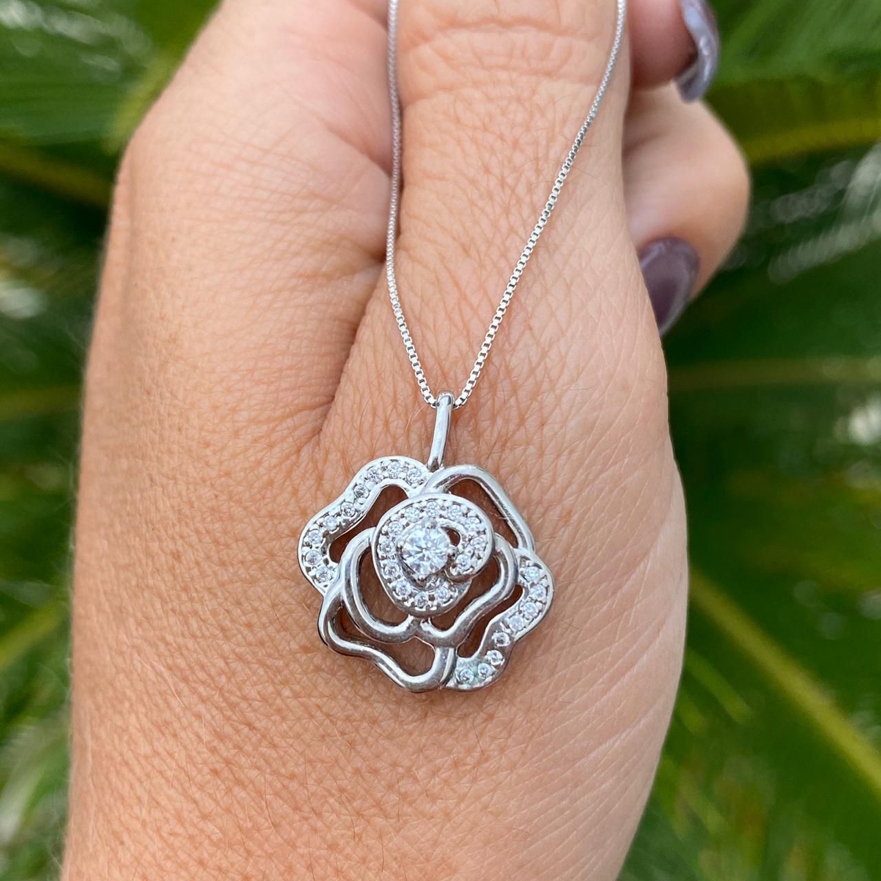 COLAR FLOR EM RODIO BRANCO.CORDÃO 40 CM.