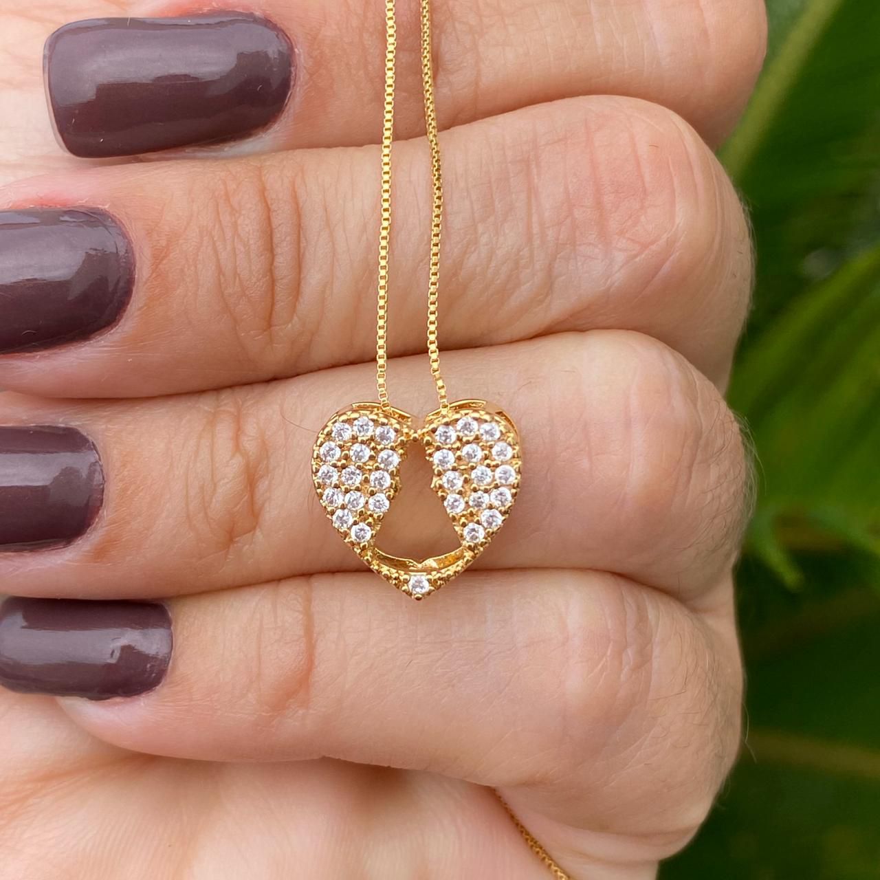 COLAR FOLHEADO OURO 18K CORAÇÃO FORMATO NOSSA SENHORA APARECIDA