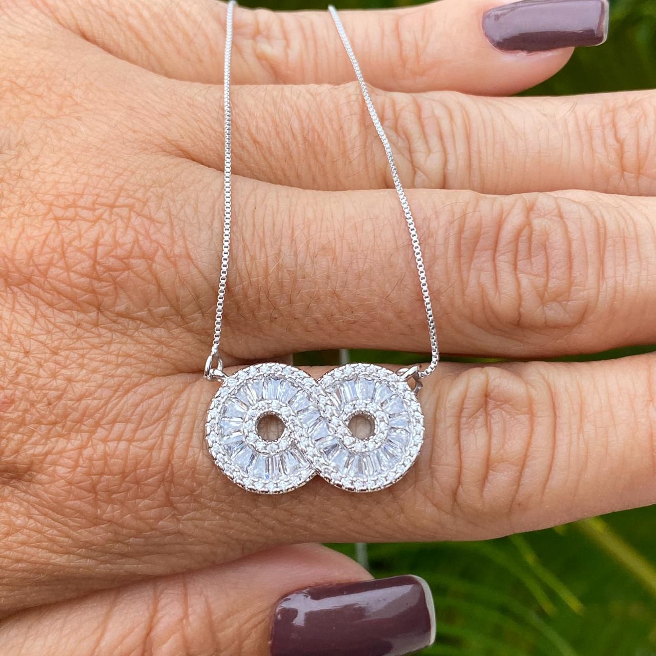 COLAR INFINITO EM RODIO BRANCO.CORDÃO 40 CM COM EXTENSOR.