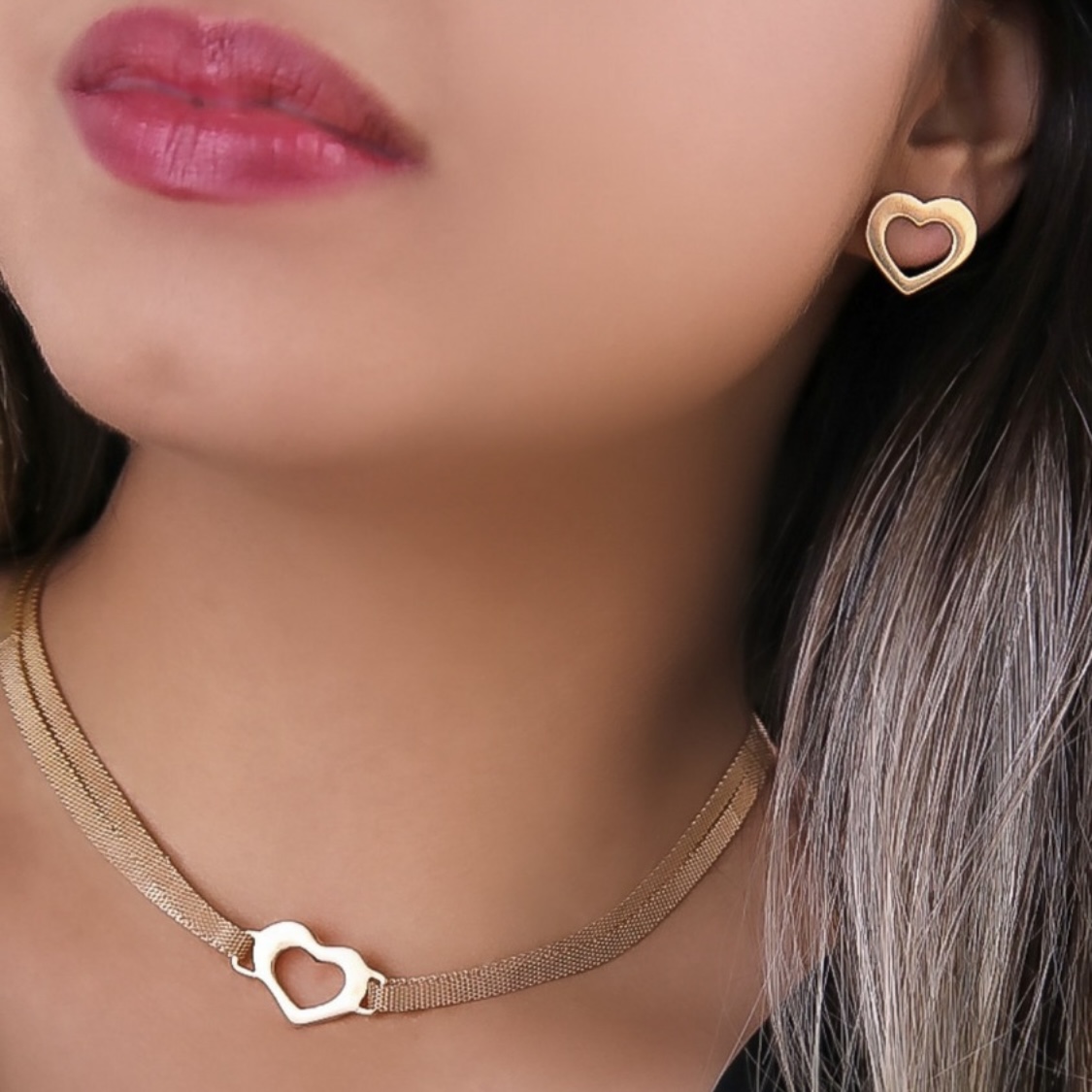 Conjunto Banhado ouro 18k Coração Vazado