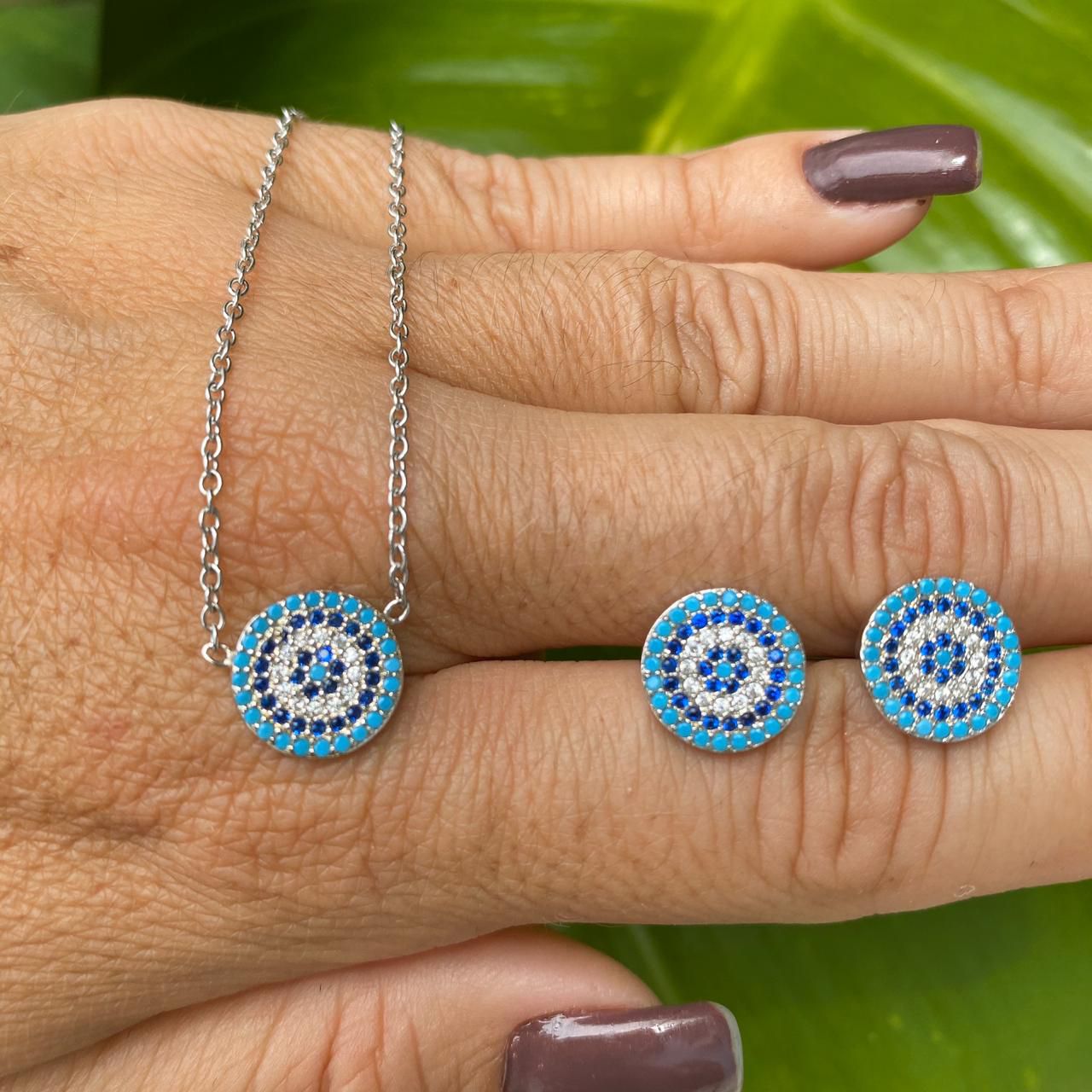 CONJUNTO PRATA 925 OLHO GREGO PEQUENO