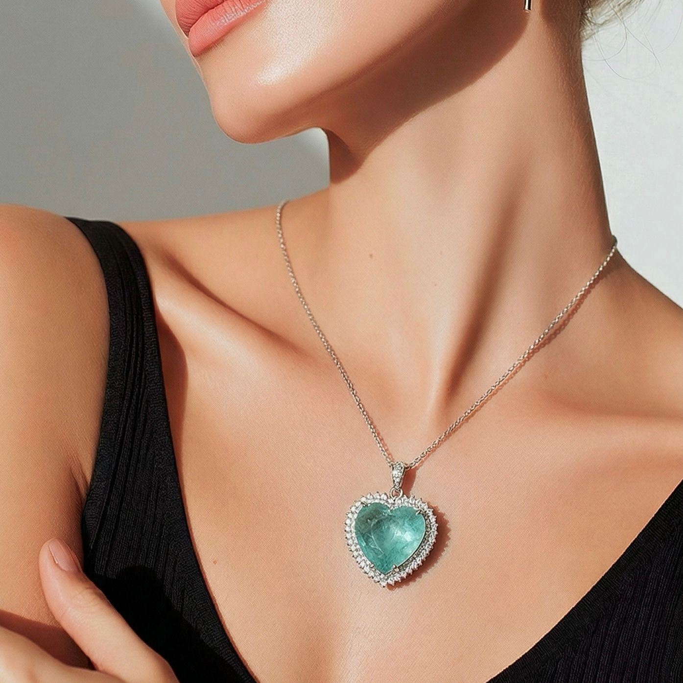 Conjunto banhado ródio branco coração pedra fusion