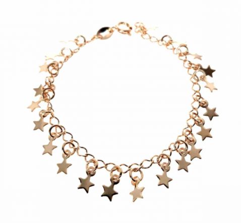 TORNOZELEIRA FOLHEADA OURO 18K ESTRELHINHAS